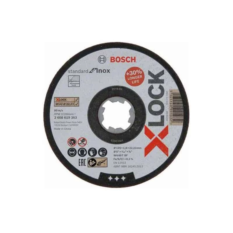 Le disque à tronçonner Standard for Inox est un choix fiable pour travailler l’inox. Le disque est en oxyde d’aluminium spécialement conçu pour être utilisé avec l’inox. Il ne contient pas d’enduits ferreux, soufrés ni chlorés. Disque à utiliser pour la coupe de l’acier inoxydable. Pour meuleuses angulaires Bosch.