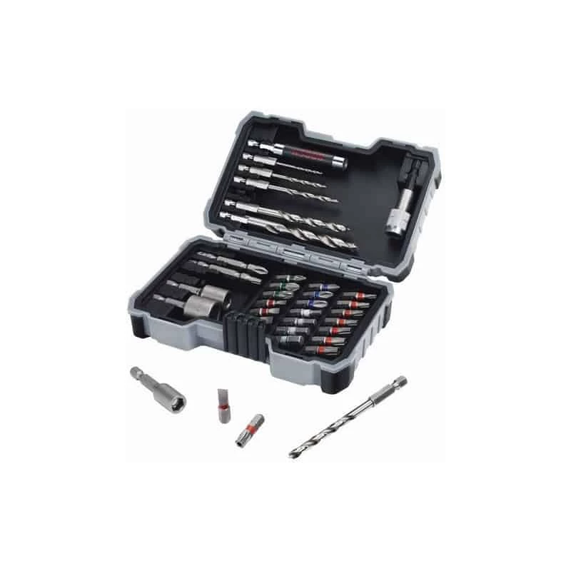 Coffret 35 pièces très complet pour le travail du bois. Forets hexa Bois, embouts de vissage, douilles et porte-embouts.