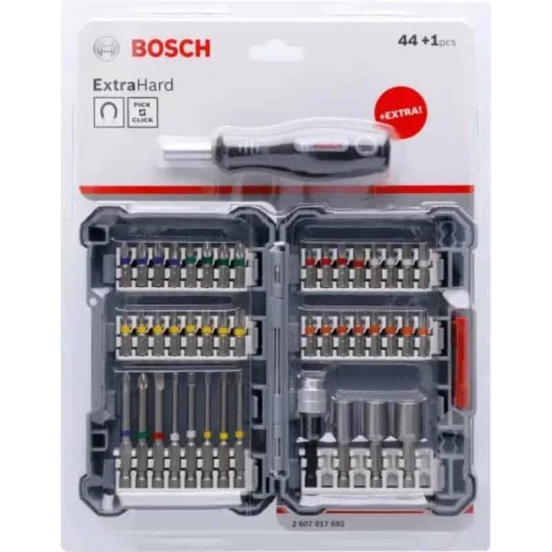 Le coffret de 44 pièces comprend 40 embouts de vissage, 3 douilles magnétiques, 1 porte embouts universel ainsi qu’un tournevis porte embouts. Livré dans un coffret de rangement compact et solide.