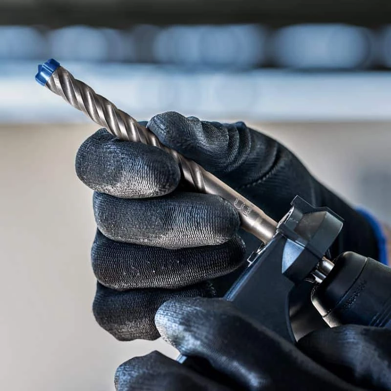 Parfaitement adaptés pour le perçage du béton armé, la tête de foret est extrêmement résistante grâce à la technologie carbure Bosch Carbide Technology ; la tête à 4 taillants est entièrement en carbure.