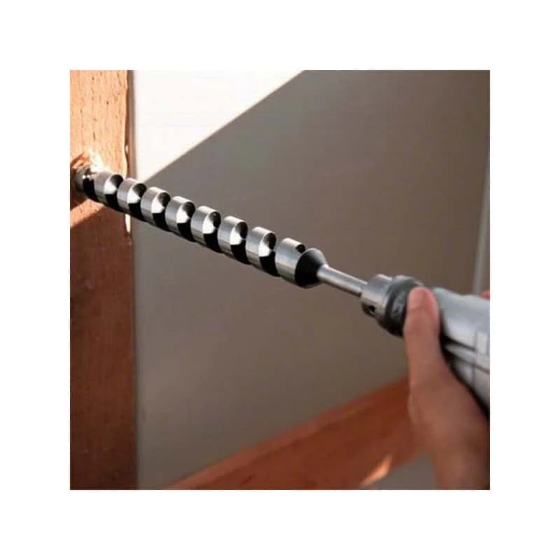 Avec les accessoires adéquats, elle vient à bout des diamètres de perçage les plus importants et ne craint pas de travailler avec des scies-trépans de 80 mm maxi. ou de mélanger des liquides visqueux