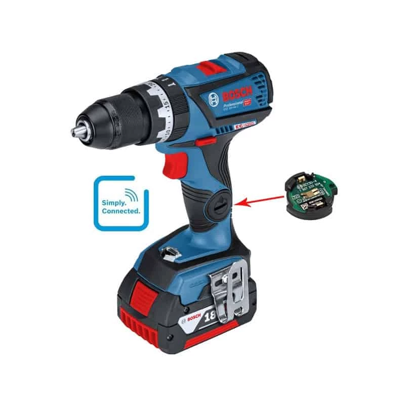 Cette perceuse visseuse percussion GSB18V-60C connectée, posséde une grande endurance et une qualité élevée, avec son mandrin entièrement en métal et son moteur EC sans charbon