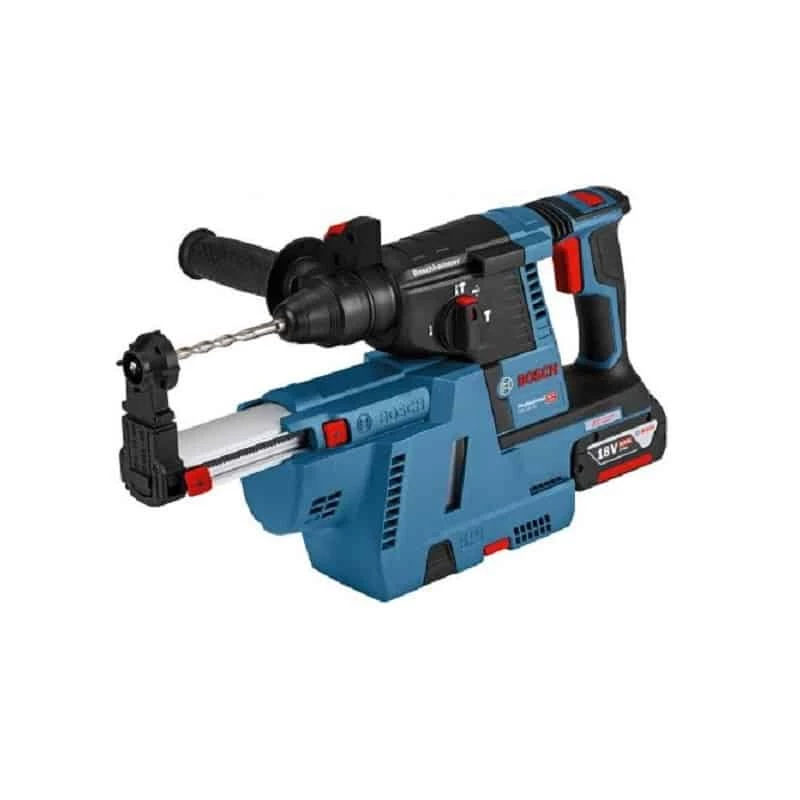 Le nouveau système d’aspiration GDE 18V-16 garantie une totale liberté de mouvement car indépendante de toute source s’aspiration extérieure. Fonctionnant sur batterie, il se met en route tout seul lors de la mise en marche du perforateur-burineur. Son filtre HEPA permet pour sa part de retenir jusqu’à 99,97% des poussières.