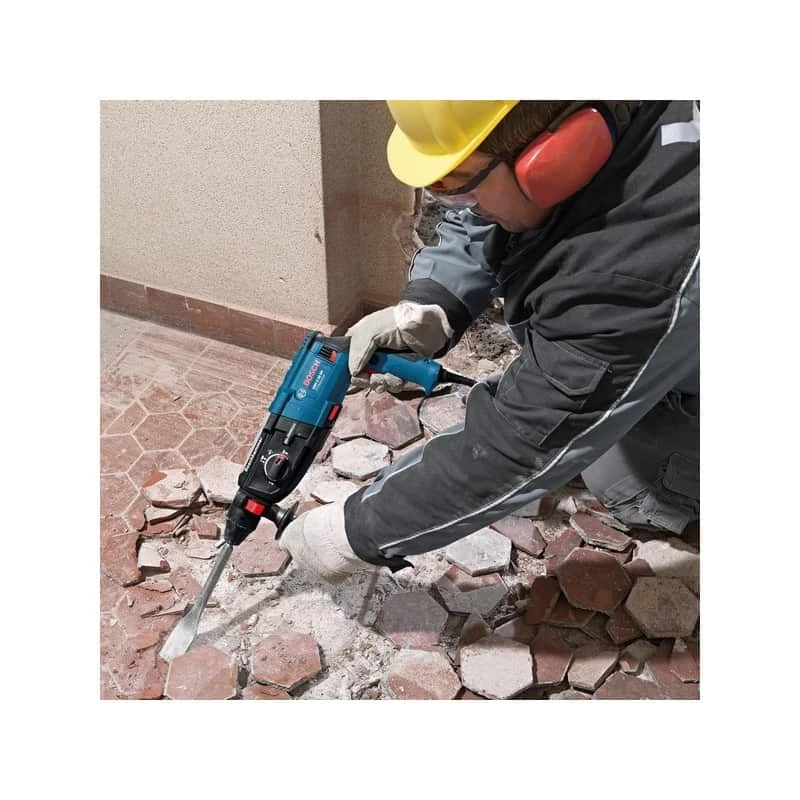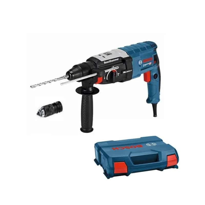 Le perforateur burineur GBH 2-28 F de Bosch est équipé de deux mandrins: SDS-Plus et auto interchangeable pour utiliser un maximum de forêts et burins. Son nouveau dispositif KickBack: ce système de débrayage de sécurité fonctionne via un capteur intelligent qui arrête l’outil en cas de blocage du foret. Cela offre une meilleure maîtrise de l’outil et empêche les contre coups soudains en cas de blocage du forêt. Il n’y a donc plus de risques de se tordre le poignet en perforant du béton.