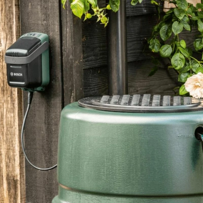 La pompe GardenPump 18V-2000 de Bosch est compatible avec tous types de récupérateur d’eau avec ou sans couvercle. Afin de fixer votre pompe à différents endroits, elle est fournie avec un adaptateur mural et pour récupérateur.