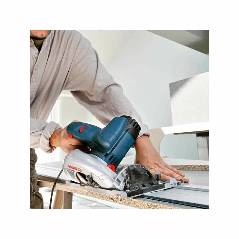Cette scie circulaire GKS65GCE d’un diamétre de 190 mm, vous sera indispensable pour la réalisation de coupes d’onglets avec le rail de guidage, et cela sans adaptateur.