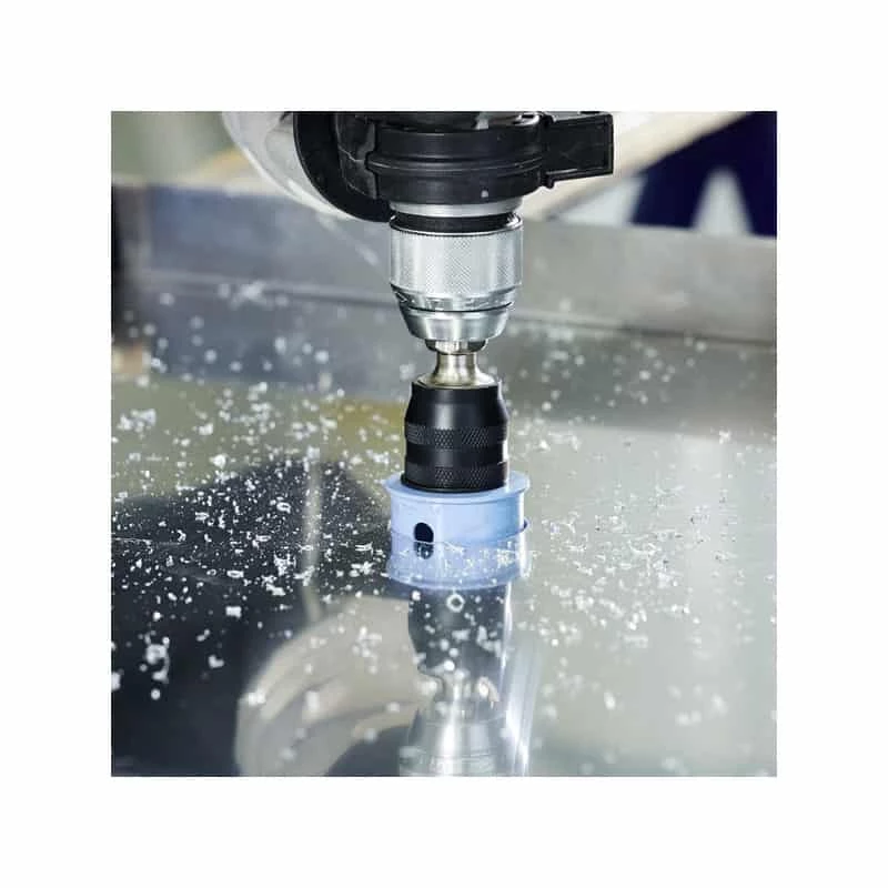 Arrêt de sécurité: Empêche la scie trépan de passer au travers du matériau, protégeant ainsi la zone de travail.