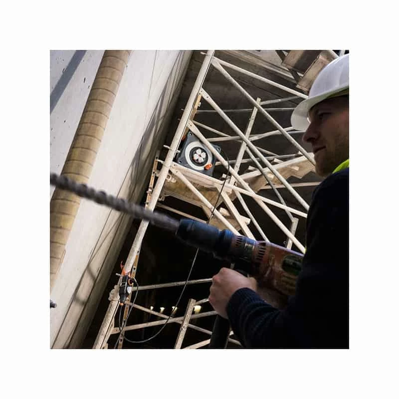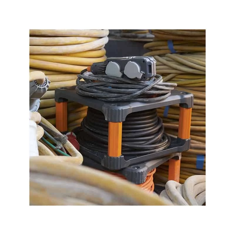 La bobine latérale dispose d’un câble de 5 mètres pour se raccorder au réseau électrique. Il est donc possible de laisser l’enrouleur à proximité du réseau électrique et vous prenez le bloc mobile powerblock qui est équipé de 4 prises de courant, d’un voyant de tension, de crochets et d’une sangle de fixation. Vous pouvez ainsi laisser l’enrouleur sur place et monter sur votre échafaudage, votre toit ou autre avec le bloc amovible.