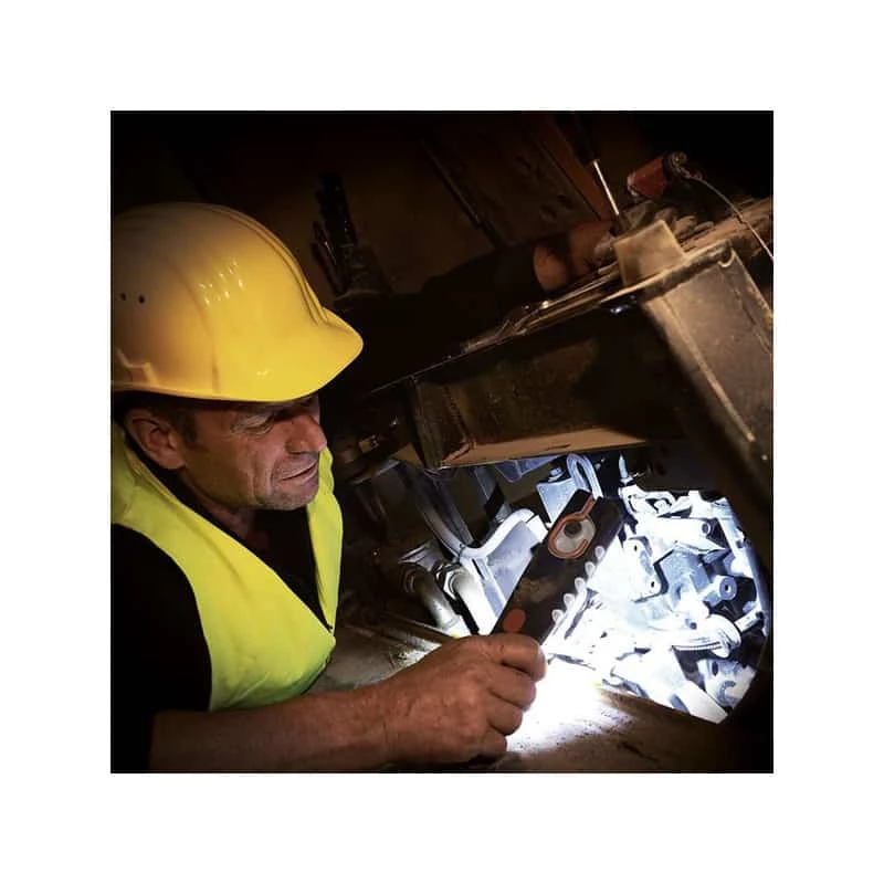 Lampe étanche à la poussière et protégée contre les projections d’eau (IP 65). Le socle de maintien orientable est équipé d’un aimant puissant afin que la lampe puisse être réglée dans la bonne position d’éclairage. un crochet pivotant à 360° et 2 aimants supplémentaires permettent de fixer la lampe sur des surfaces planes.