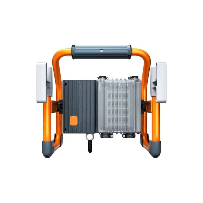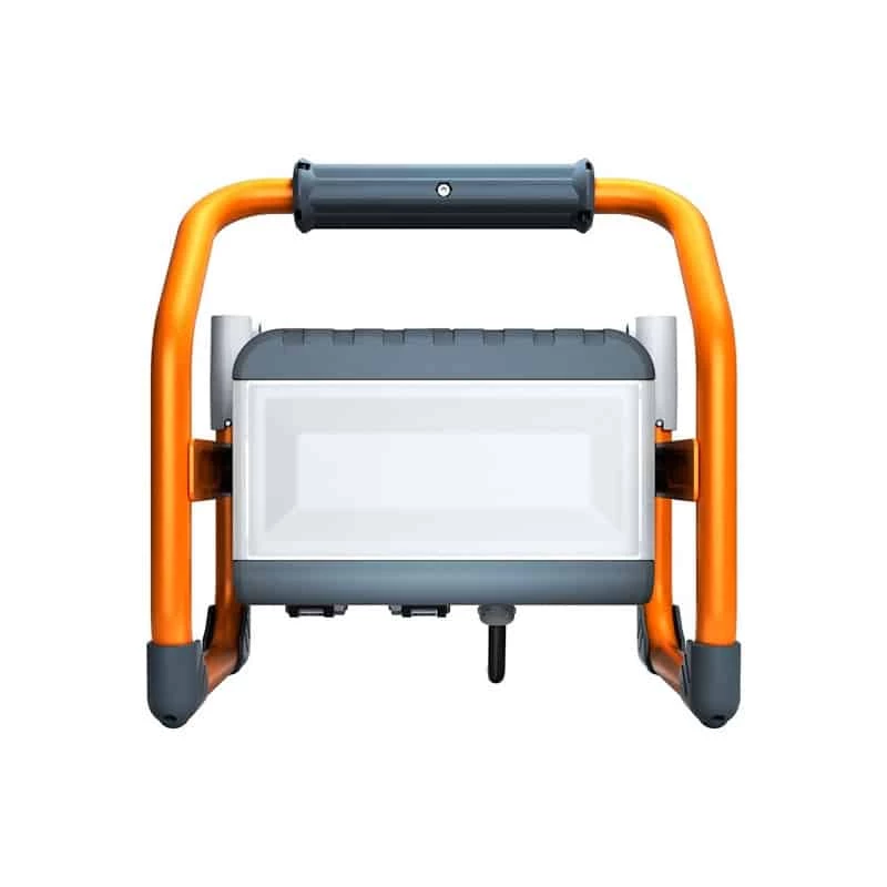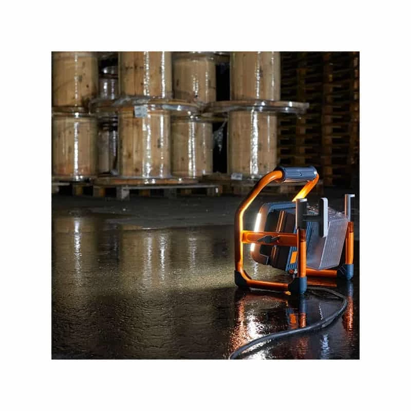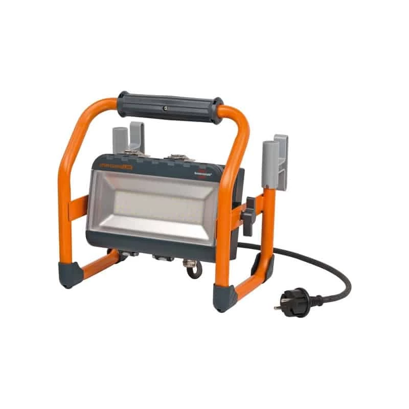 Projecteur LED hybride de Brennenstuhl : sa technologie hybride permet d’utiliser le projecteur avec une batterie Li-ion ou sur secteur. Brennenstuhl a intégré un système de batterie Bosch : toutes les batteries Bosch Pro de 18V Li-ion sont compatibles avec le projecteur. Le capot de batterie fermé protège la batterie contre les projections d’eau et de poussières. L’autonomie annoncée sur batterie de 5Ah est de 2.5 heures pour une utilisation à 100% et de 5 heures pour une utilisation à 50%, grâce à son réglage sur 2 modes d’éclairage. Sa puissance de 40 Watts offre une luminosité de 3200 lumens pour un bon éclairage sur tous vos chantiers.
