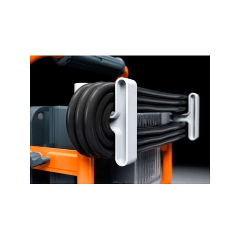 Le projecteur peut donc également être alimenté par secteur. Un support de câble escamotable est disposé à l’arrière du projecteur et permet d’enrouler le câble de 5 mètres.