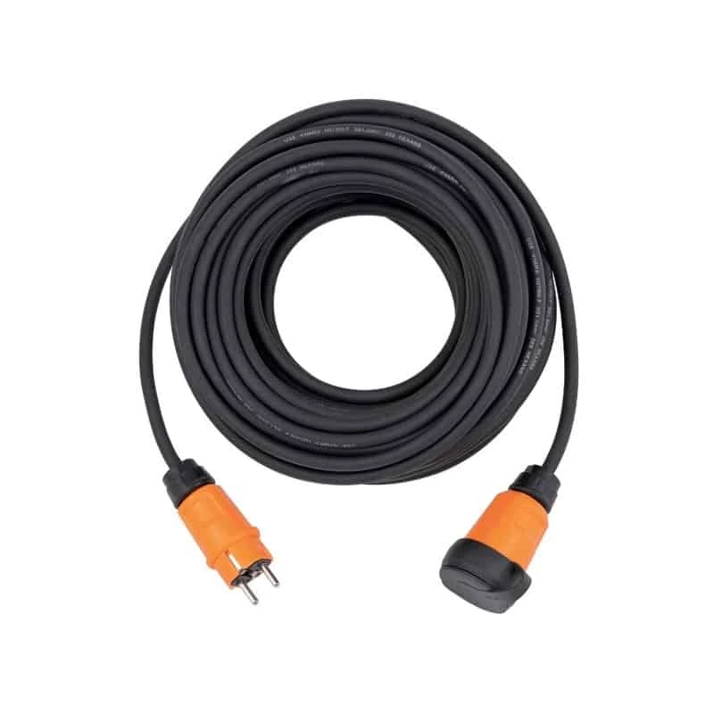 Rallonge de 10 mètres Brennenstuhl. La fiche est très robuste et le prolongateur dispose d’un clapet de protection contre l’eau et la poussière. Le cable de section 2.5 mm² est robuste et résistant aux hydrocarbures pour un usage professionnel sur les chantiers. Son indice de protection IP 44 vous permet de travailler en toute sécurité.