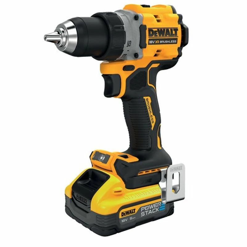 Une perceuse visseuse 18V avec la technologie de batterie POWERSTACK.