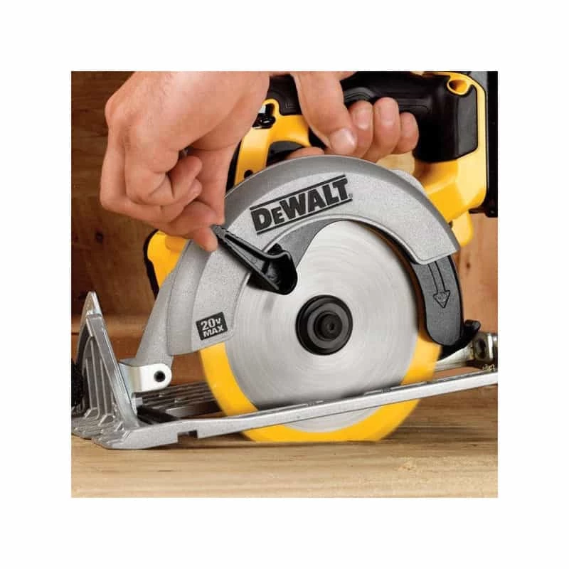 Scie circulaire DCS391NT, moteur DEWALT PM58, refroidi par ventilateur, avec des charbons remplaçables, équipée d’une lame de 165 mm de diamètre avec un trait de coupe très fin, permet de réaliser des coupes rapides et de bonne qualité et assure ainsi une avance de coupe constante à une profondeur de 55mm.