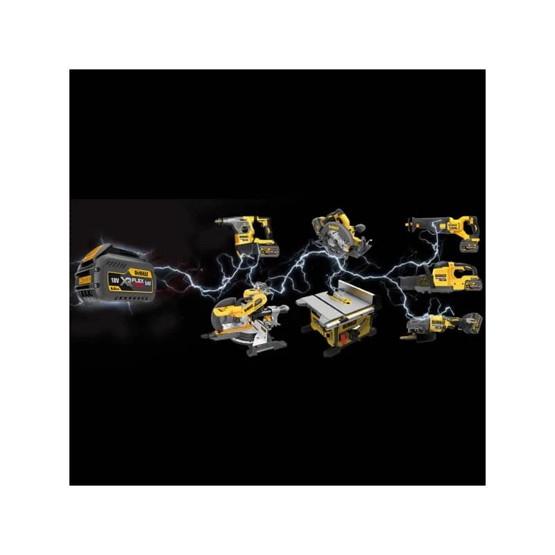 La nouvelle batterie DEWALT Hybride XR FLEXVOLT adapte automatiquement sa tension en fonction de l’outil utilisé.