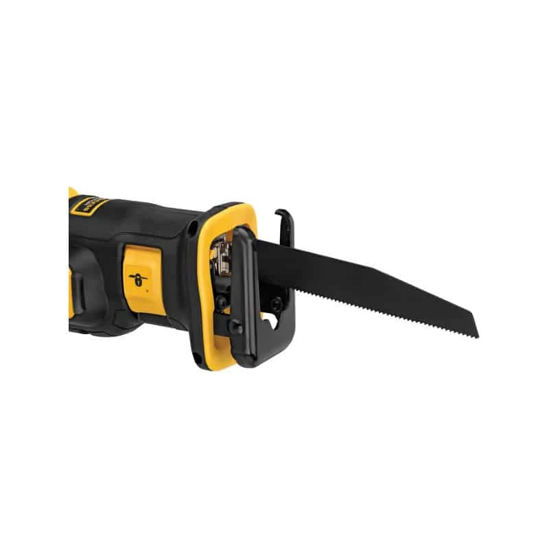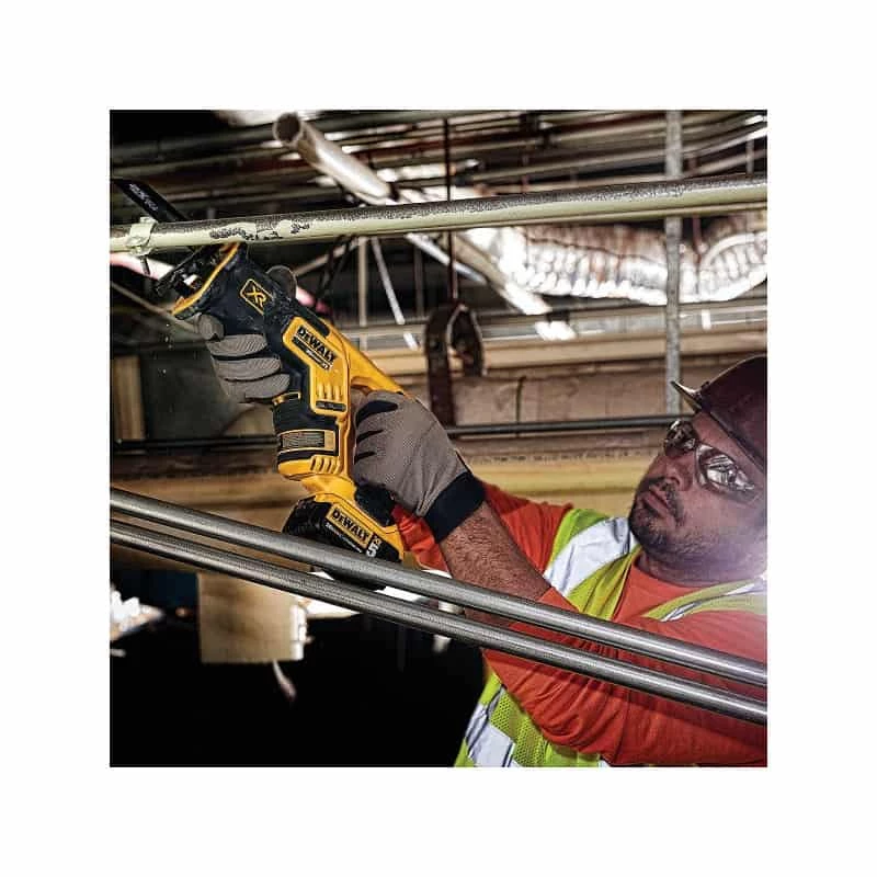 La scie sabre Dewalt DCS 367 P2 permet de travailler dans des espaces étroits grâce à sa compacité avec son moteur XR 18V Brushless. La lame de la scie peut être montée dans 4 positions différentes pour une utilisation multiple et il est possible de la raccourcir contre les murs, les sols et les plafonds. De plus on peut les charger sans clé. Éclairage LED pour une meilleure visibilité de la zone de travail.