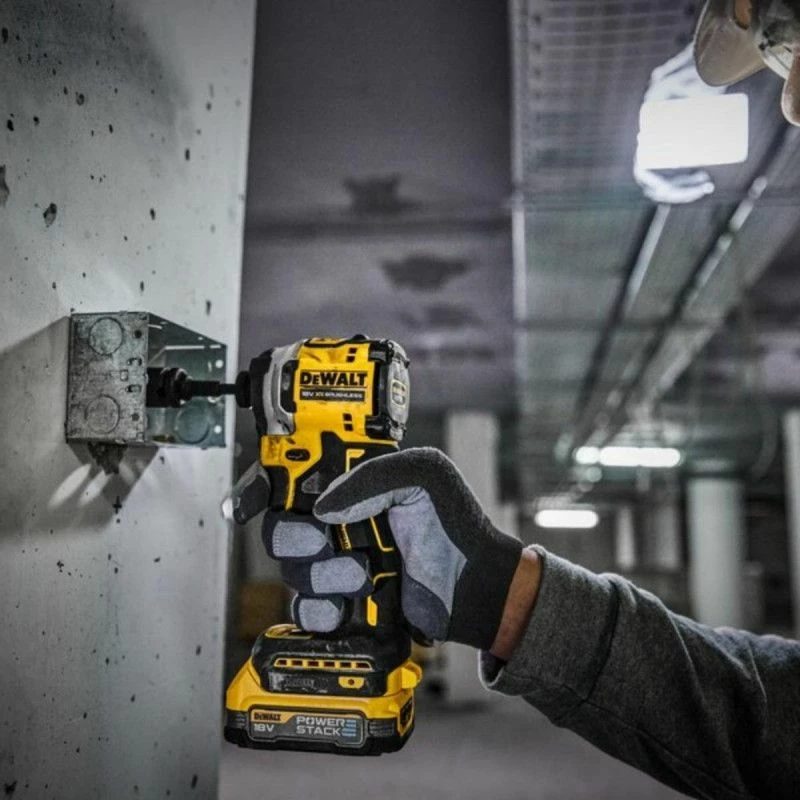 Pratique, la visseuse à choc sans fil possède une lampe à LED en anneau pour une visibilité optimale. Livrée avec deux batteries POWERSTACK compatibles avec tous les outils XR 18 V.