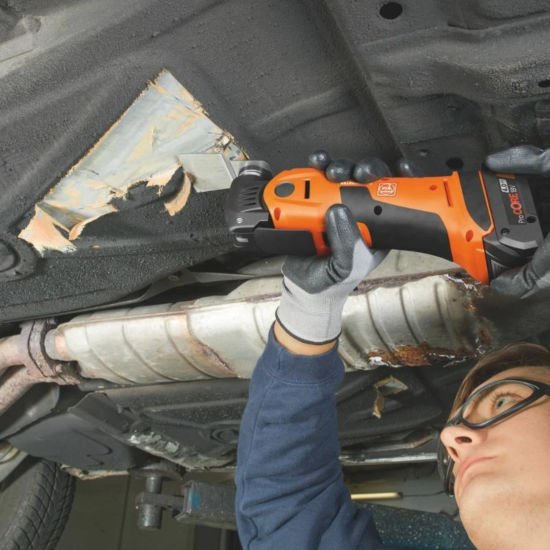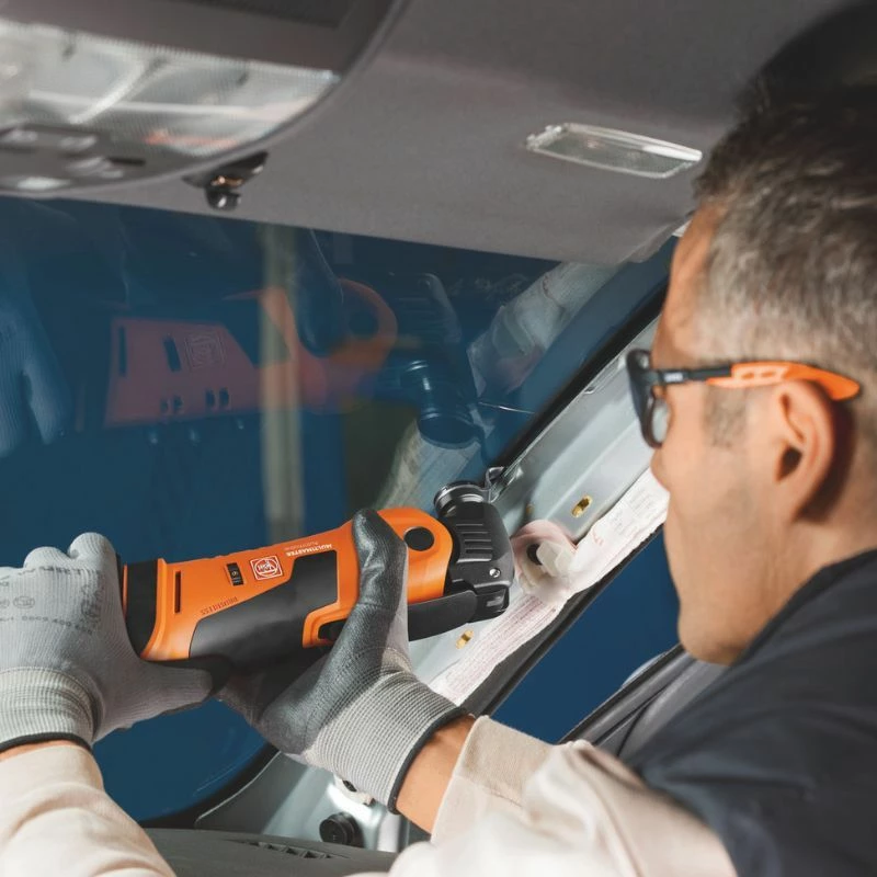 Le Multimaster Industrie AMM 700-1.7 Q AUTOMOTIVE AS est une machine oscillante sans fil puissante et rapide conçue pour la dépose de vitres et les travaux de carrosserie dans le secteur automobile, fourni avec un assortiment complet d’accessoires pour la dépose de vitres et les travaux de carrosserie et compatible avec les toutes nouvelles batteries 18 V AMPShare et Bosch Professional.