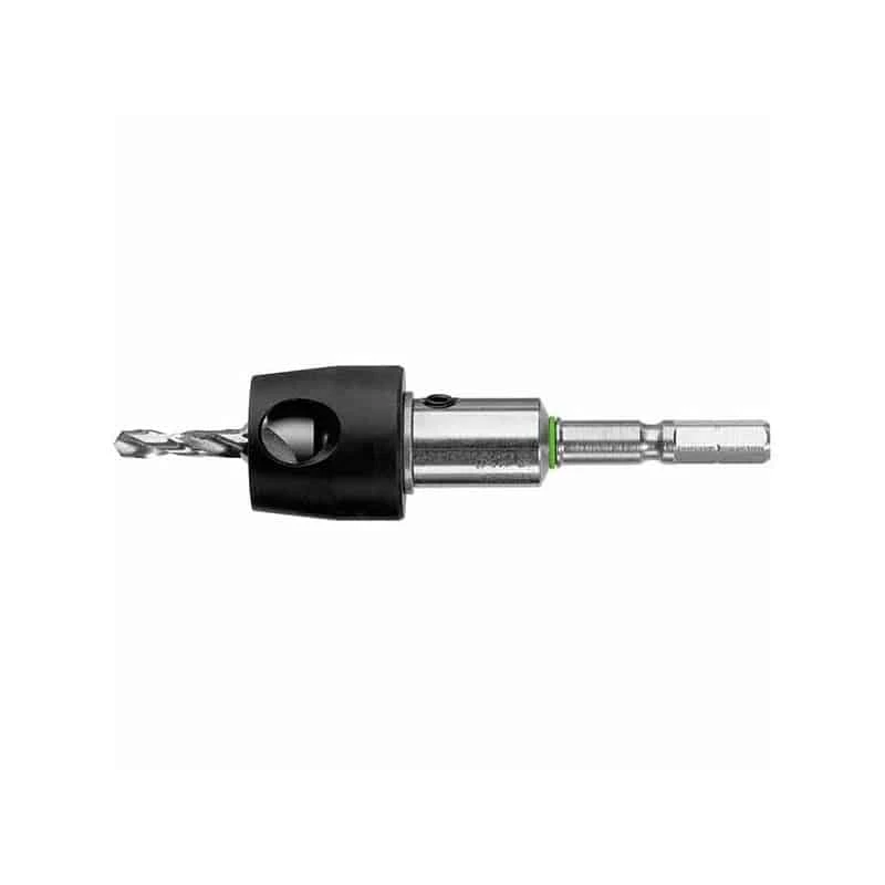 Réaliser le perçage et chanfreinage en une seule opération avec le foret BSTA HS D 5 CE de Festool. Butée de profondeur réglable.