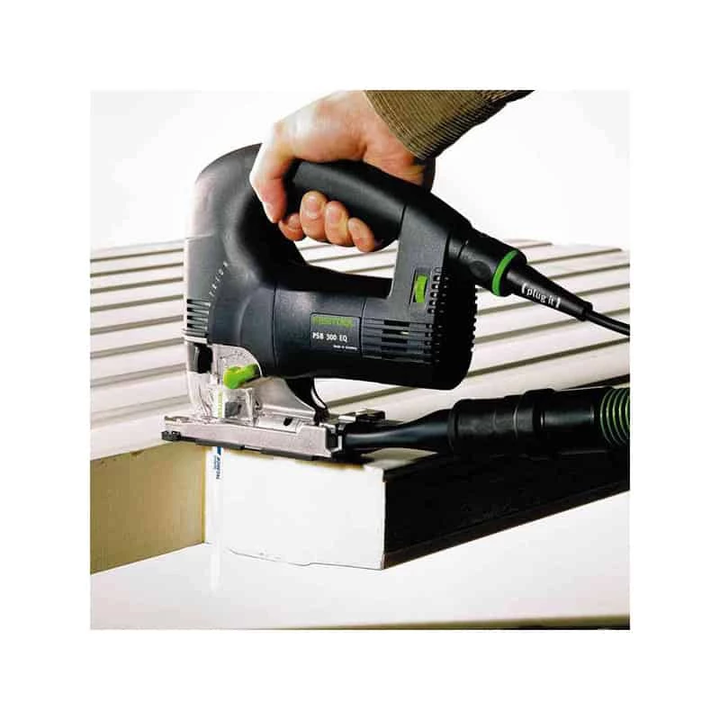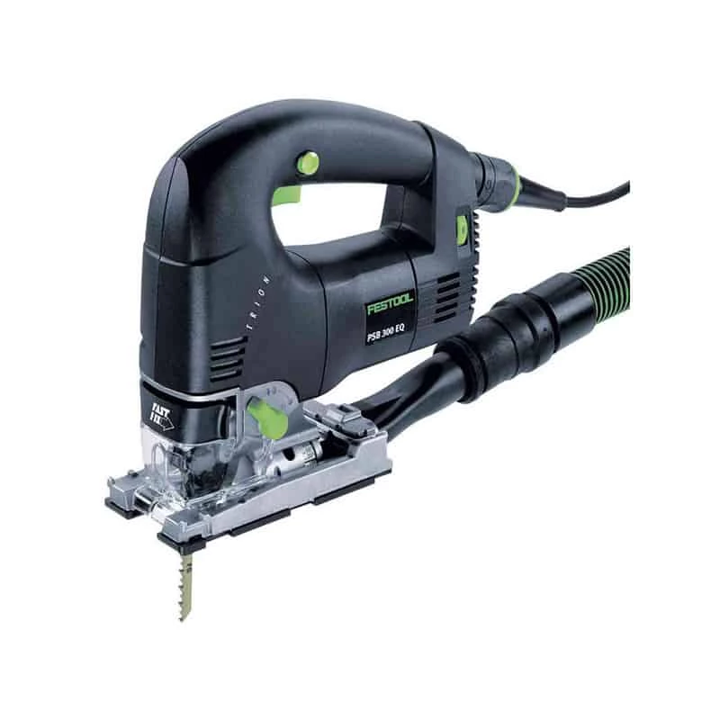 La scie sauteuse pendulaire TRION Festool est robuste, puissante et ergonomique. Le triple guidage breveté de lame à réglage parallèle des joues en acier carbure garantit une précision absolue de la lame, le pare-éclats permet d’éviter les retouches. Grâce à son ergonomie parfaite et son centre de gravité idéal, la TRION se laisse guider aisément, même dans une utilisation à main levée.