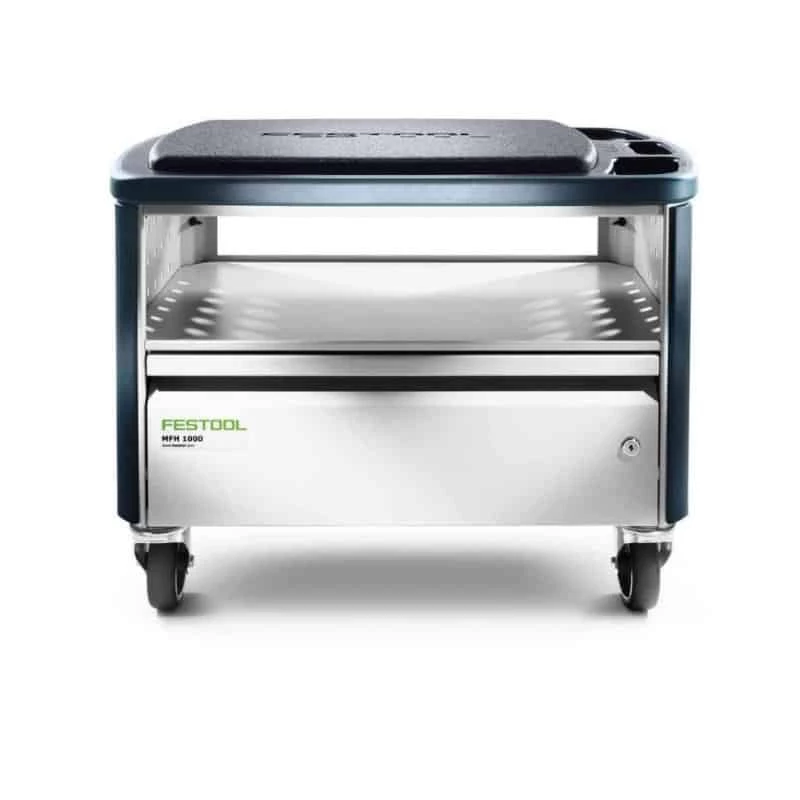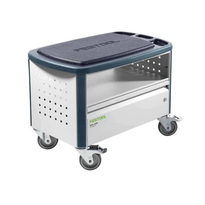 Utilisable comme un siège ou comme une servante, le tabouret multifonctions MFH 1000 Festool offre de nombreuses possibilités pratiques de rangement et d’accrochage pour les outils et les matériaux.