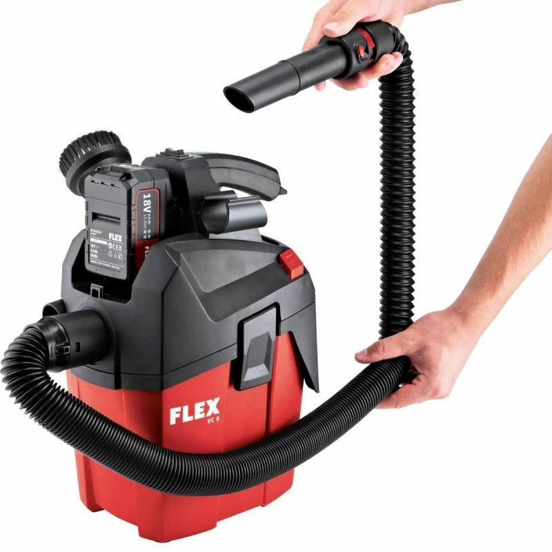 Compact et léger, l’aspirateur VC 6 L MC de Flex est très maniable grâce à sa sangle de transport. Doté d’une turbine à haut rendement, l’aspirateur sans-fil offre une puissante aspiration et une dépression élevée qui le rend idéal pour le nettoyage des bureaux, entrepôts, ateliers et véhicules.