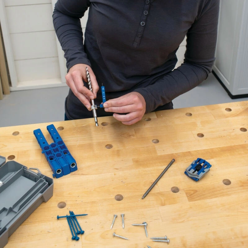Cette mèche réglable avec jauge de profondeur de Kreg est un accessoire pour le perçage des matériaux. En effet, vous pouvez ajouter un nouveau foret sur votre gabarit de perçage pour vous aider dans vos perçages. Compatible avec Pocket-Hole Jig séries 500 et 700. Le foret est équipé d’un collier d’arrêt et une jauge d’épaisseur pour les gabarits de perçage. Pour faciliter le perçage des matériaux, le foret comporte des marquages gravés et dispose d’une clé hexagonale intégrée.