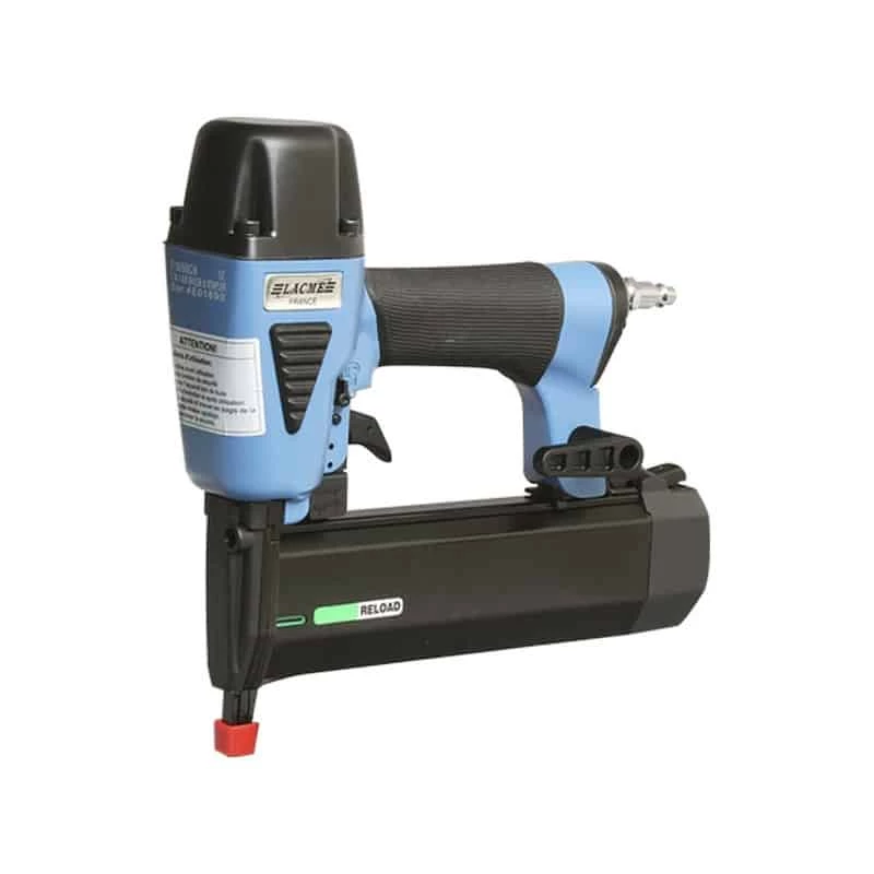 L’agrafeuse-clouteuse LACME 347704 est un outil professionnel performant. Grâce à sa molette de réglage de profondeur, son sélecteur de cadence de frappe et sa protection antimarquage, vous êtes sûr de pouvoir adapter la puissance de la machine à vos besoins afin d’éviter de marquer les pièces, pour de meilleurs finitions.