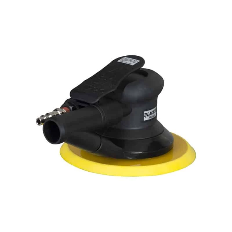 Son pommeau est équipé d’un revêtement isolant et antidérapant pour plus de confort. Le débit d’air et commandé via un levier au dessus du pommeau et la vitesse peut être ajustée via le régulateur pour s’adapter à tous types de chantiers. Brancher et débrancher l’outil se fait également facilement avec son raccord rapide pour l’entrée d’air. Enfin, livré d’origine avec un flexible et un sac, les pousssières de ponçages sont aspirées au travers des 6 trous du plateau.