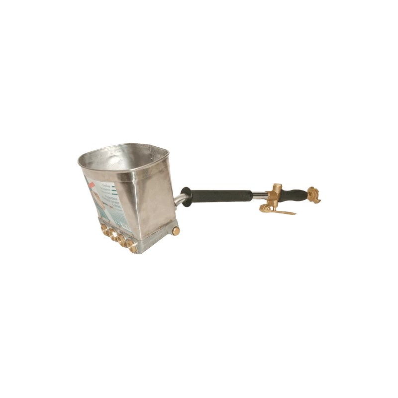 Type 2 mains – Godet 4 litres en tôle galvanisée avec 4 buses d’air démontables et 4 buses produits interchangeables Ø 1,5 ou 2 cm – Poignée avec révêtement isolant – Kit de nettoyage – Raccord express et raccord rapide gros débit