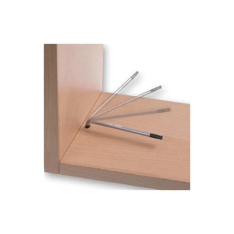 Raccord d’assemblage pour panneaux d’une épaisseur de 13 mm ou plus, Clamex P-10, un élément d’assemblage démontable avec ancrage à engagement positif P-System ♦ Trou d’accès de 6 mm permettant de se démarquer des standards de l’industrie du meuble ♦ Assemblage du bois avec outillage électrique Zeta P2 ou centre d’usinage Applications ♦ Assemblage démontable de meubles, étagères, armoires encastrées etc. ♦ Aide à l’encollage d’onglets et angles de 30-180° ♦ Solide et à engagement positif: Ancrage à engagement positif assurant une résistance optimale à la traction même dans des matériaux fragiles ♦ Montage rapide des pièces de fixation: Celles-ci sont glissées dans la rainure. Plus de vissage ni de collage ♦ Montage sans outil des pièces de fixation: Les éléments d’assemblage sont insérés dans la rainure profilée à la main, sans outil ♦ Démontage sans détérioration: Les éléments d’assemblage peuvent être retirés de la rainure profilée sans dégât, par ♦ Tolérance latérale dans la rainure profilée: Comme les éléments ne sont pas vissés, ils peuvent être décalés dans la rainure afin d’obtenir une pièce à usiner en affleurement parfait ♦ Picots de blocage latéraux: Grâce à ces picots latéraux, les éléments de fixation ne peuvent pas se glisser hors de la rainure profilée, ce qui est pratique pour le transport des pièces prémontées ♦ Assemblages en angle à usage polyvalent: Les éléments P-System peuvent être montés dans tout angle. La rainure est toujours positionnée à 90° de l’angle du raccord. ♦ Petite profondeur de fraisage: Epaisseur minimale du matériel de 13 mm – ample surface d’ancrage avec profondeur de fraisage moindre – idéal pour assemblages de matériaux en panneau.