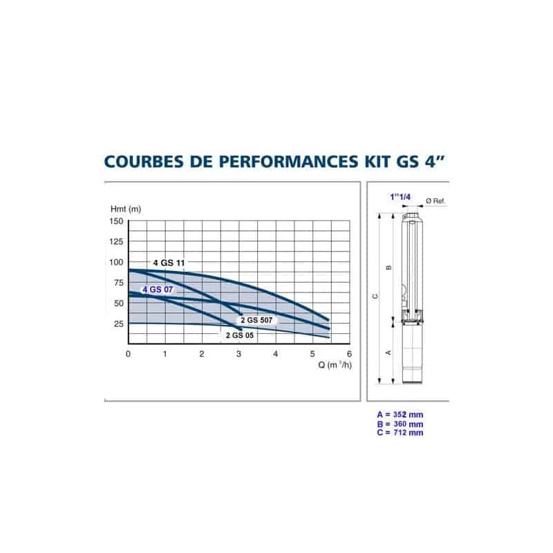 LOWARA Kit GS 4″ Pompe Immergée Pour Eau Claire – 4GS07M KE QSM