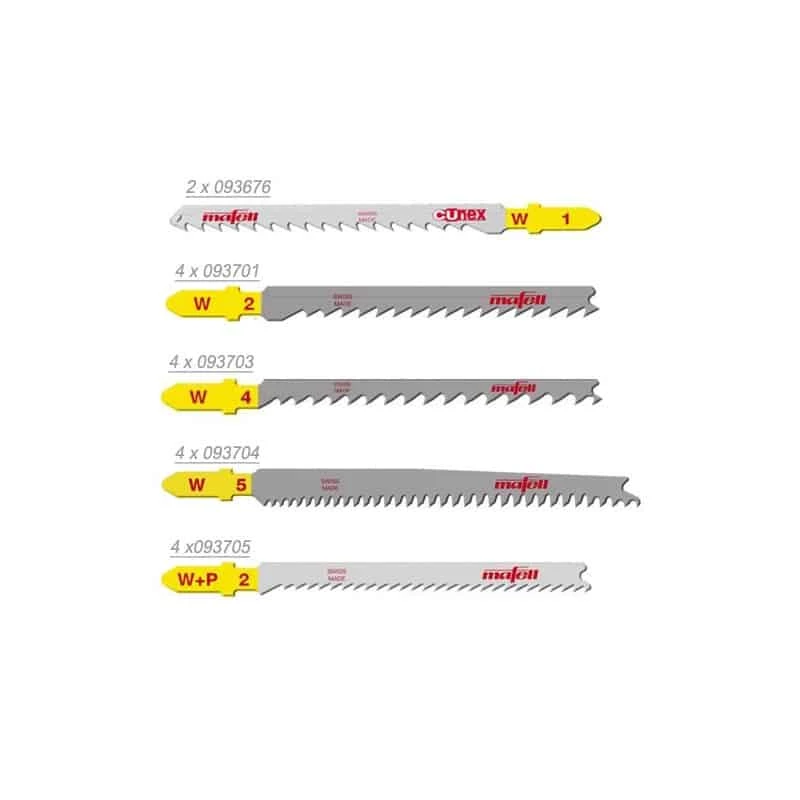 – W1 CUnex: Lames de scie haute précision pour le bois massif, les panneaux de particules/ lamellés collés, pouvant couper jusqu’à une épaisseur de 64mm. – W2: Pour le bois massif, les panneaux de particules/lamellés collés. Pouvant couper jusqu’à une épaisseur de 64 mm.