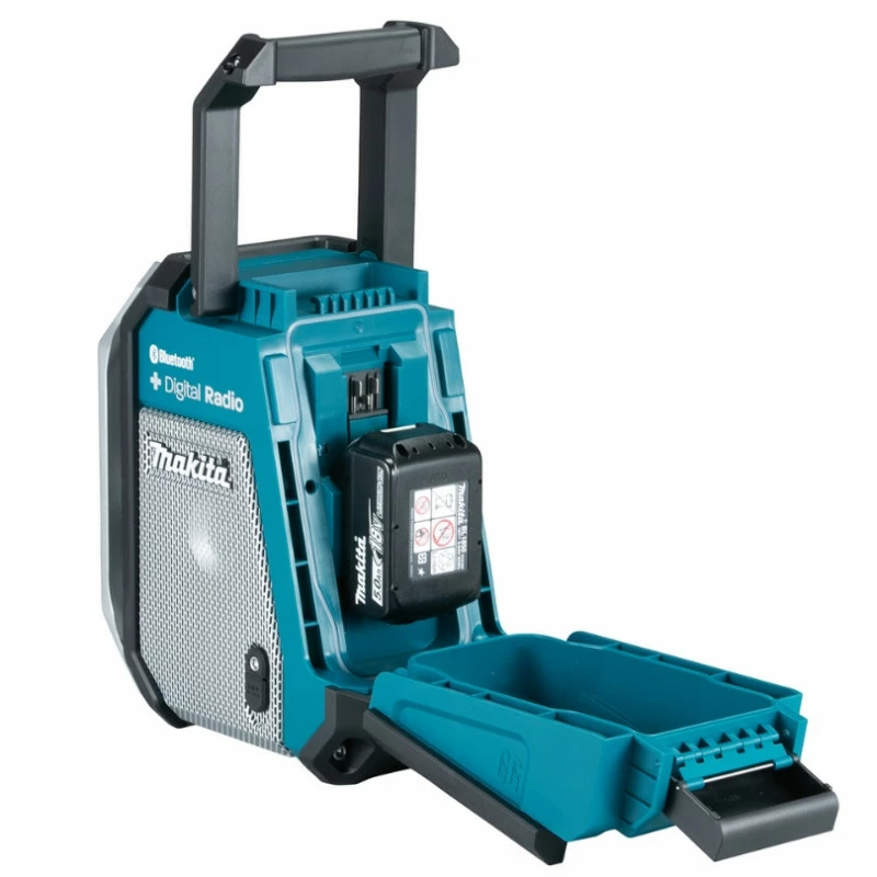 La radio de chantier de Makita fonctionne sur secteur ou sur batterie. Elle est capable de recevoir la FM ainsi que les réseaux DAB ou la DAB+ (radio numérique terrestre). De plus, vous pouvez, en Bluetooth, connecter votre téléphone pour écouter votre musique sur une portée de 10m.