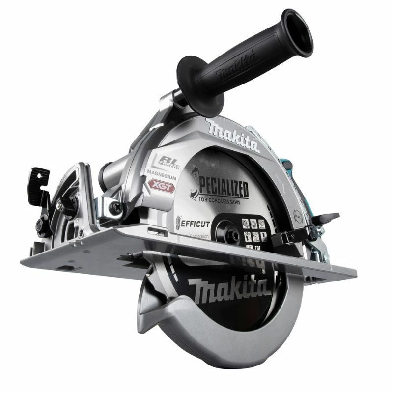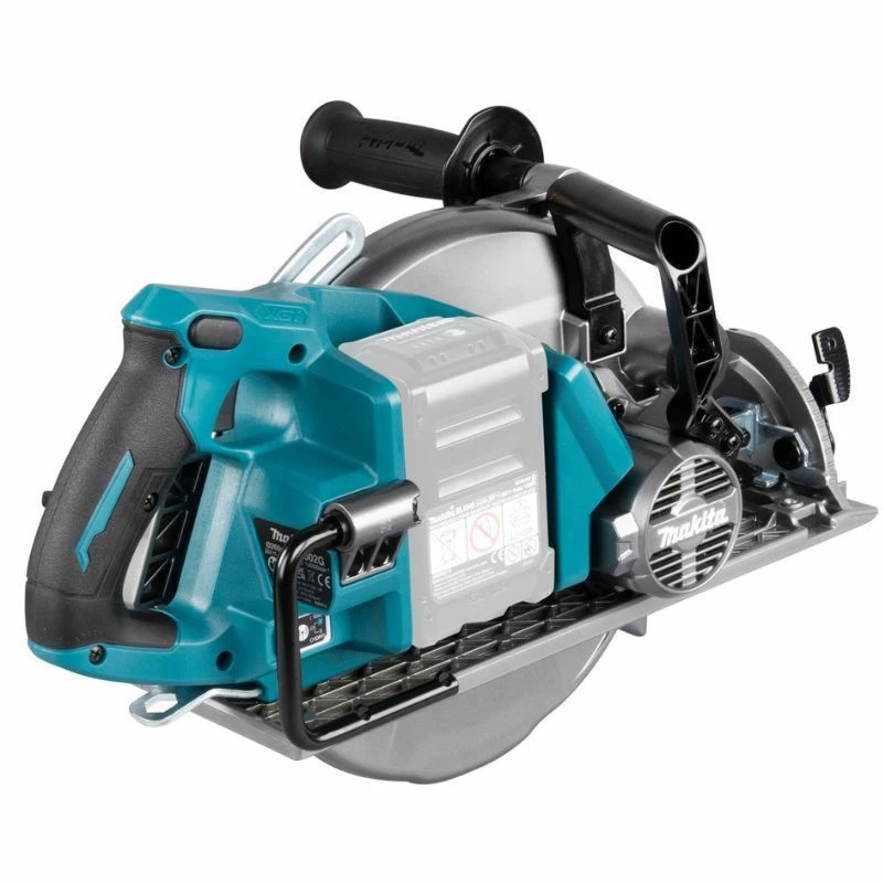 La scie circulaire de 260mm RS002GZ possède la technologie ADT qui ajuste automatiquement la vitesse et le couple en fonction du travail effectué, la technologie XPT qui limite les infiltrations de poussières et d’eau ainsi que la technologie XGT qui accroit la puissance et donne de meilleures performances grâce à la communication entre l’outil et la batterie. Il est possible de monter la machine sur un rail de guidage. Le moteur brushless limite l’usure, diminue la consommation et augmente l’autonomie et puissance de la machine.