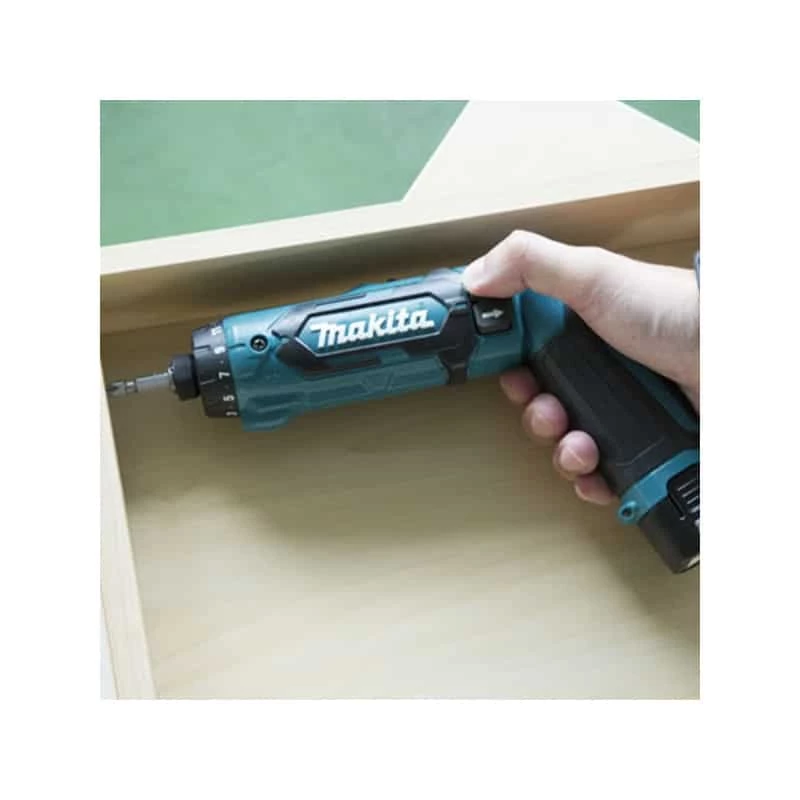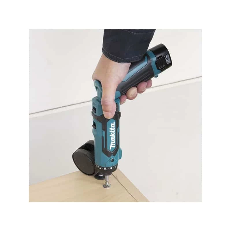Idéal pour les travaux de vissage dans les endroits exigus, le visseuse sans fil DF012DSE de Makita possède nombreux atouts :