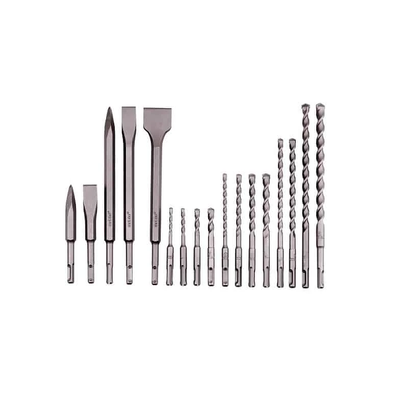 Set de forets et burins fourni avec une mallette. Idéal pour le béton, la maçonnerie et la pierre naturelle.