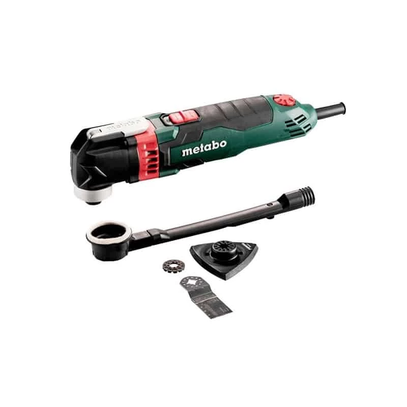Idéale pour le sciage, le tronçonnage et le ponçage à sec de petites zones sur le bois, les plastiques, les métaux, la tôle en acier, le carrelage ou encore sur les surfaces enduites et vernies, la machine multifonctions Metabo MT 400 Quick est également adaptée pour le grattage de restes de colle et résidus de peinture.