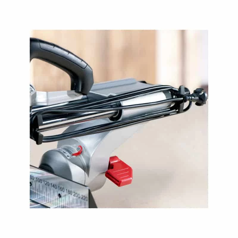 La tête de scie est inclinable à gauche avec réglage supplémentaire de l’angle pour les contredépouilles.