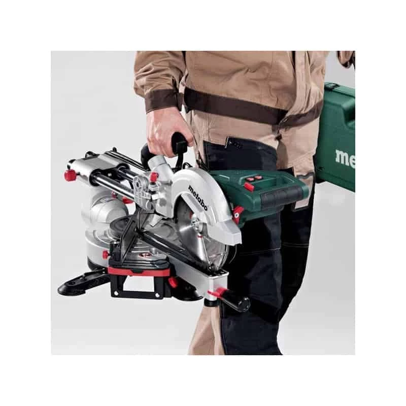 La scie onglet Metabo KGS305M offre un rendement de coupe important grâce à son puissant moteur de 1600 W et sa lame de 305 mm de diamètre. Sa fonction radiale permettant de découper facilement des pièces larges. Dans ce sens, la structure est faite en fonte d’aluminium moulée sous pression pour résister aux contraintes les plus élevées. Grâce à son poids de seuleument 19,6 kg, son bloacge de tête de scie, ainsi que ses poignées ergonomiques, il est facile de la transporter sur tous vos chantiers. Ce qui fait de cette scie un excellent rapport poids/rendement.
