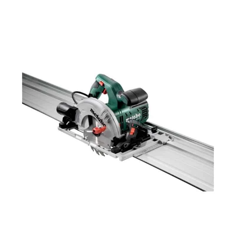 Compatible avec les rails de guidage FS et ceux d’autres fabricants, la scie circulaire portative Metabo KS 55 FS permet de réaliser des coupes longues et précises.