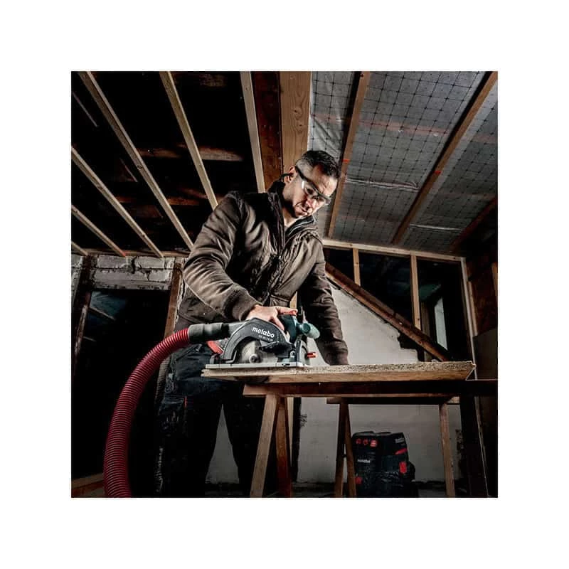 Puissante et légère, la scie circulaire portative sans fil KS 18 LTX 57 de Metabo convient parfaitement pour une utilisation universelle sur les chantiers.
