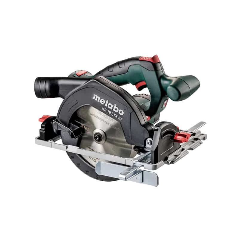 Puissante et légère, la scie circulaire portative sans fil KS 18 LTX 57 de Metabo convient parfaitement pour une utilisation universelle sur les chantiers.