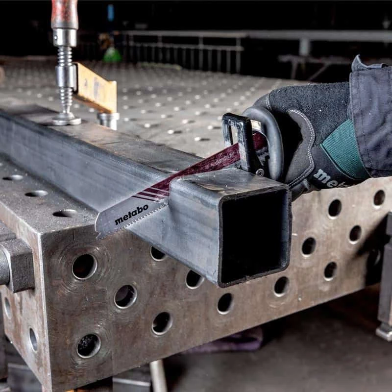 La butée de profondeur se règle sans outil et grâce au système Metabo Quick, la lame se change sans outil. Pour un fonctionnement en continu, la scie sabre de Metabo possède un interrupteur de changement de vitesse avec la fonction de blocage.