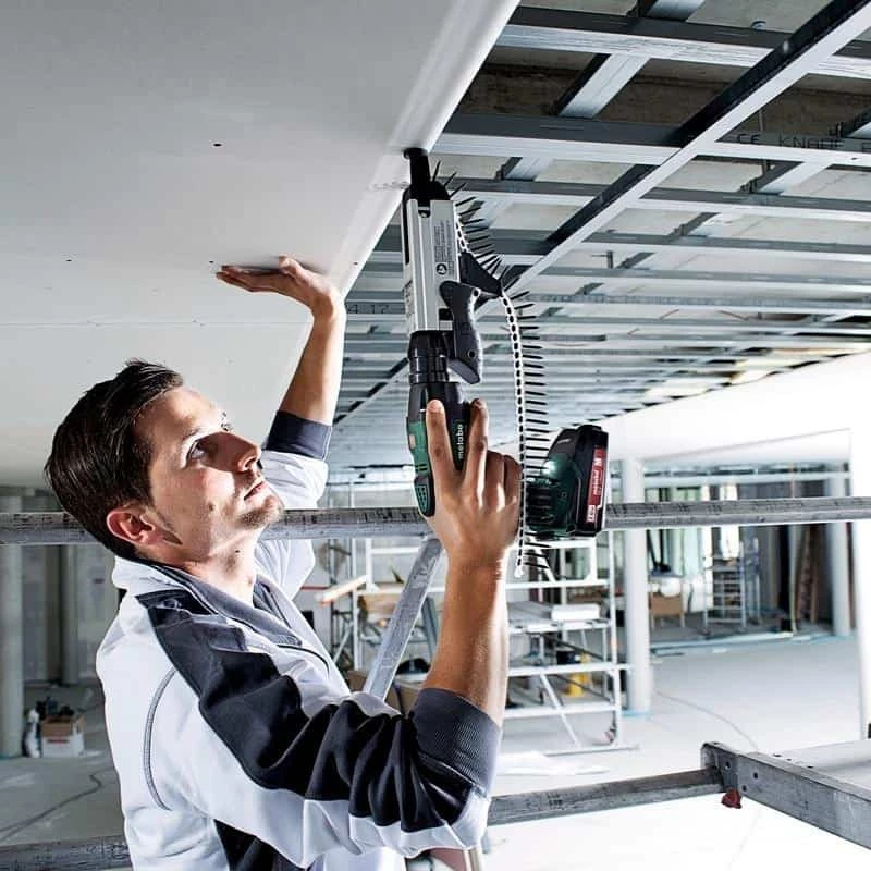La visseuse SE 18 LTX 2500 de Metabo est idéale pour les constructions sèches comme le vissage des plaques de placoplâtre et de staff. Légère et compacte, elle offre un vissage précis grâce à sa lampe intégrée, au réglage de la butée de profondeur ainsi qu’à l’embrayage silencieux à griffes.