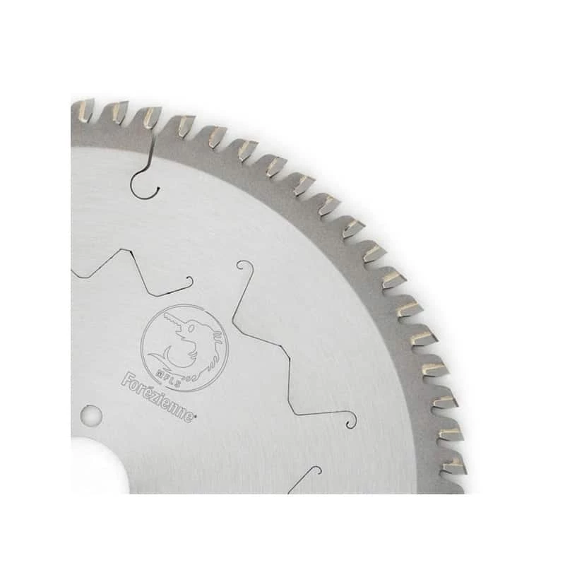 Lame de scie circulaire carbure MFLS Forézienne idéale pour le débit et la mise à format de panneaux – Denture trapézoïdale poistive Heller.