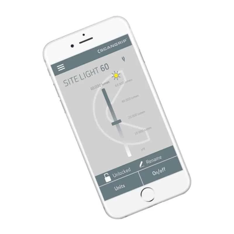 Contrôlez votre lumière de chantier et variez son intensité sur 4 niveaux par Bluetooth sur votre appareil mobile. Grâce à sa poignée intégrée et son poids de seulement 6,7 kg, vous pouvez transporter facilement le projecteur de chantier.