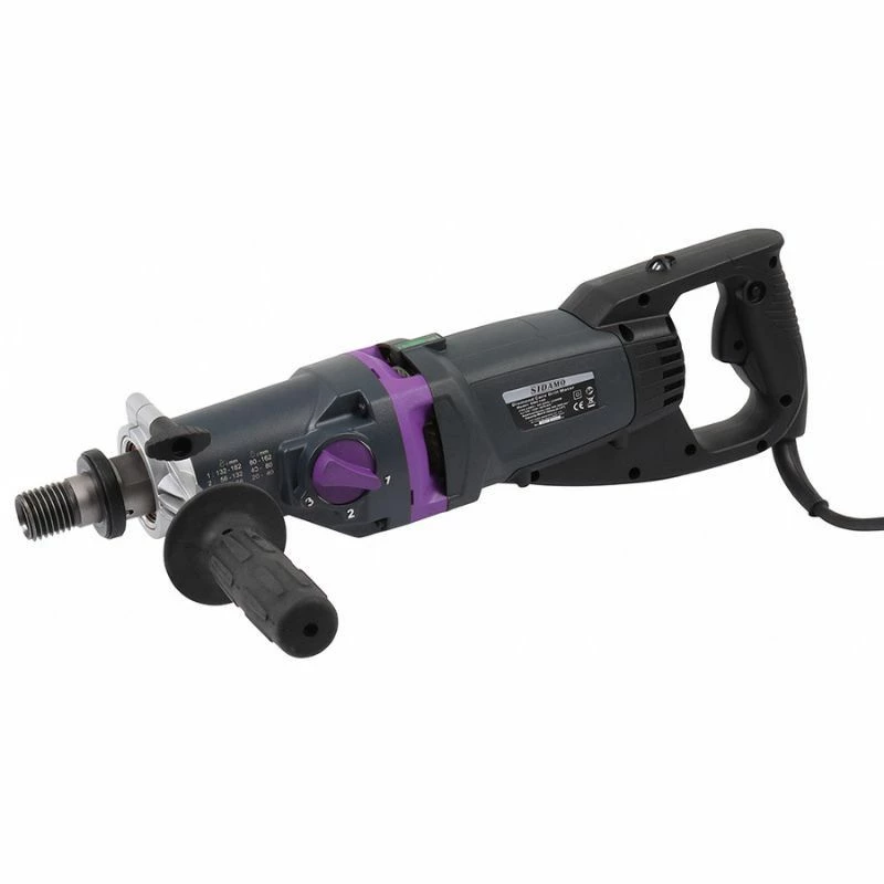 Pour une utilisation fréquente pour le carottage à eau et occasionnelle à sec. Une machine compacte et puissante qui peut être portative à usage manuel ou combinée sur bâti (en option).