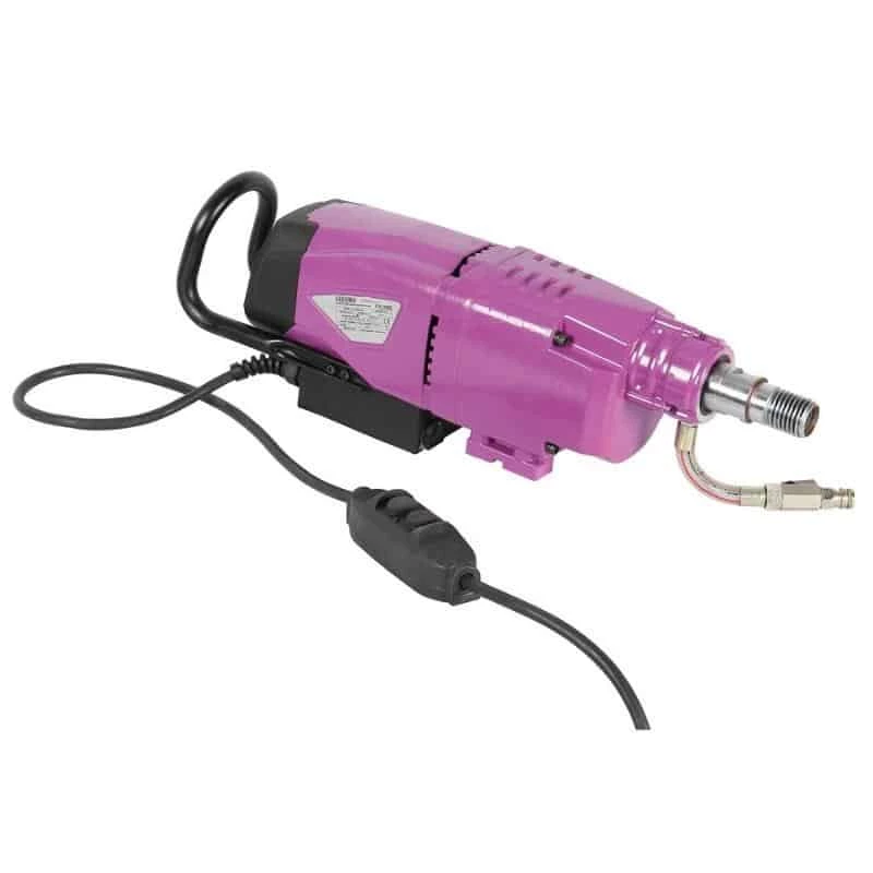 À utiliser sur bâti, la carotteuse à eau 20116082 démarre progressivement. Pour votre sécurité et celle de la machine, l’embrayage électronique fonctionne par friction et le câble d’alimentation néoprène est équipé d’un disjoncteur différentiel 30 mA à bobine à manque de tension