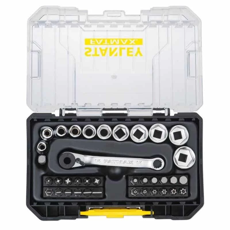 Les douilles 1/4’’ FATMAX ont 6 pans, un moletage (X-KNURL), un corps décolleté et un profil maxidrive. Un profil maxidrive signifie que le couple de serrage est transmis sur les flancs de l’écrou et non sur les arêtes.